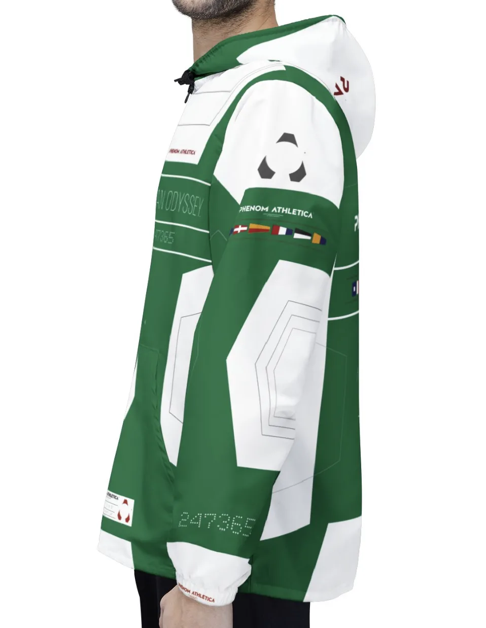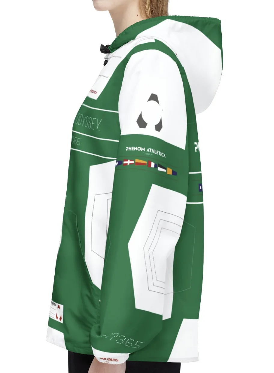 This Phenom Athletica® Ocean Odyssey™ Windbreaker brings Heaps of Aesthetics into any wardrobe. Available in 6 sizes for that Perfect Fit, these jackets are unisex and feature black zippers and strings. Meanwhile, the Two Front Pockets add Extra Practicality Points to what’s already a Daily Staple.